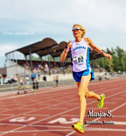 My name is Maria, I am 54 years, I live in Stockholm, Sweden. My first running race ever was Stockholm marathon back in 1980, I was 20 years and ran in ca 3.40 hrs. I kept running, joined a club, ran also shorter distances. My best 10 km in ca 36.40. Ran marathons almost every year during the 80s and the 90s. I’ve done three sub 3 marathons (best ca 2.56). 1993 I ran my first 100 km. Ultra was not big then here in Sweden. I ran in 9 hours 26 min. It was considered kind of weird and people almost didn’t believe it was possible. I had the Swedish record for 100 km from 1993 to 2008. (Now that time is well beaten since we have some really good ultrarunners like Kajsa Berg, now Swedish recordholder with 7.35, she came second at World championships 2012 and first at Euroean championships 2012 and 2013.)